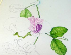 Sweet pea sketchbook illustration in progress on Fluid HP