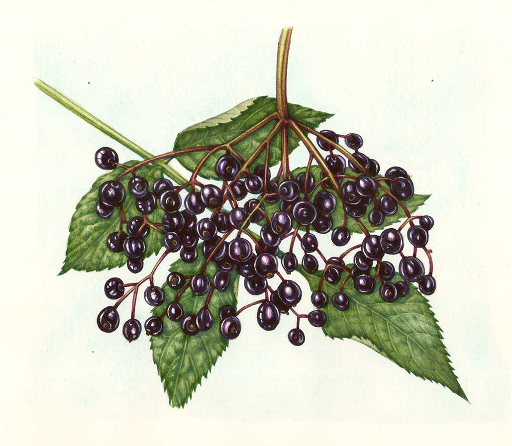 Jersey Post fruits botanical illustration by Lizzie Harper copyright Jersey Stamps 2017 Elderberry final