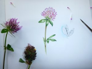 Red clover completed sketch and plant on Claire fontaine hotpress watercolour paper tested for botanical illustrations compared and tested by Lizzie Harper
