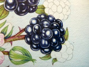 Botanical illustration by Lizzie Harper of the Jersey bramble Rubus caesarius copyright Jersey Post 2017 7