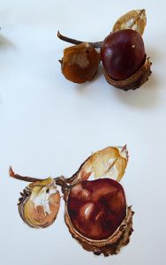 student painting of conker