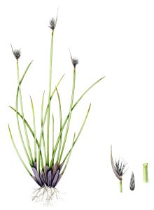 Sedge unisex flowers Schoenus nigricans Black bog rush botanical illustration by Lizzie Harper