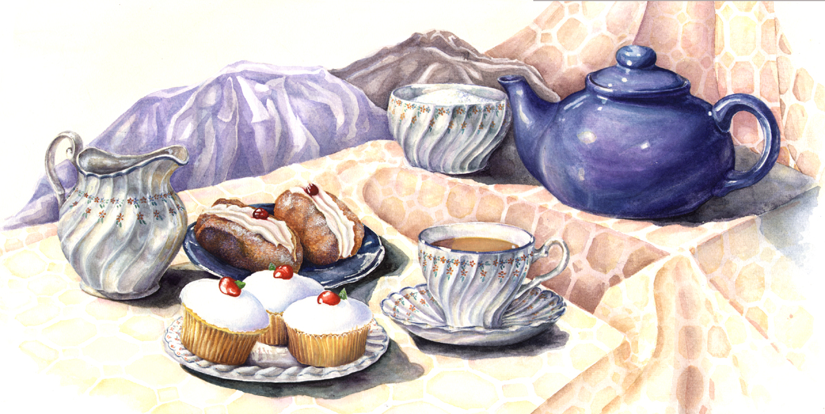 Technology green Tea Set illustration by Lizzie Harper botanical illustrator