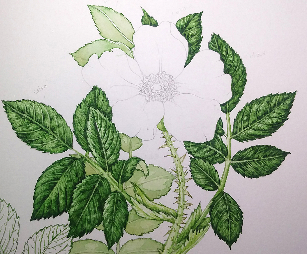 Illustrating Rose leaves 8 by botanical illustrator Lizzie Harper