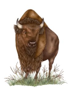 Bison artwork for wild shreds pet food illustrated by Lizzie Harper copyright Spot farms 2019