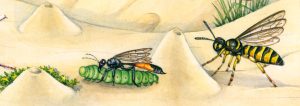 Red Banded sand wasp Ammophila sabulosa and Sand Tailed Digger wasp Cerceris arenaria