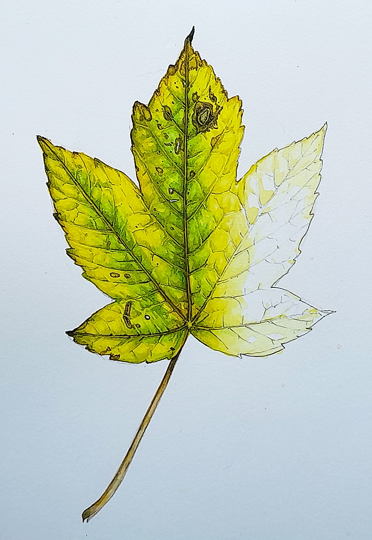 Step 10 finished Botanical illustration of Sycamore leaf Acer pseudoplatanus by Lizzie Harper
