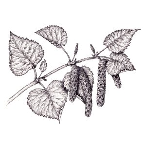Downy birch Betula pubescens catkins and sprig