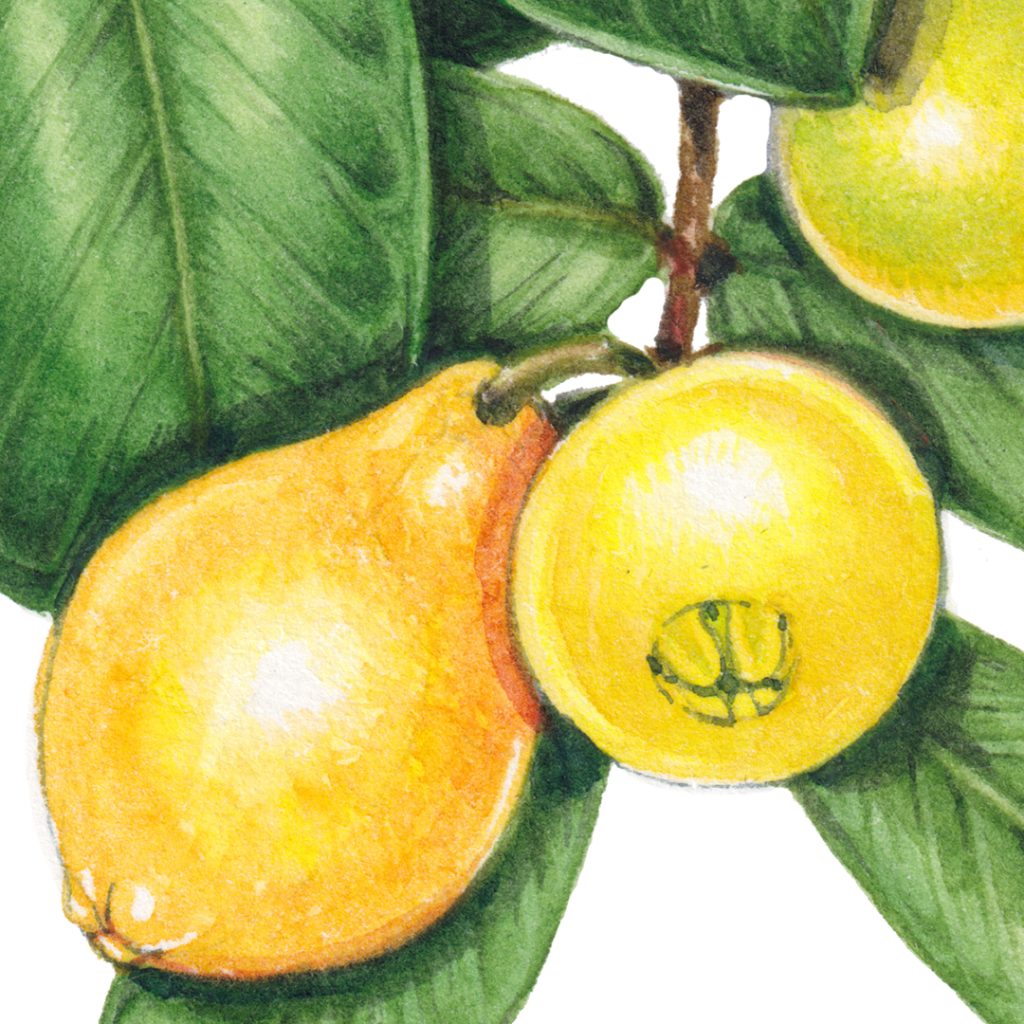The fruit is the same colours as my illustration, if a touch rounder. I didn’t cut open the fruit to see if the flesh is the same pink colour I showed, that would have been rude.