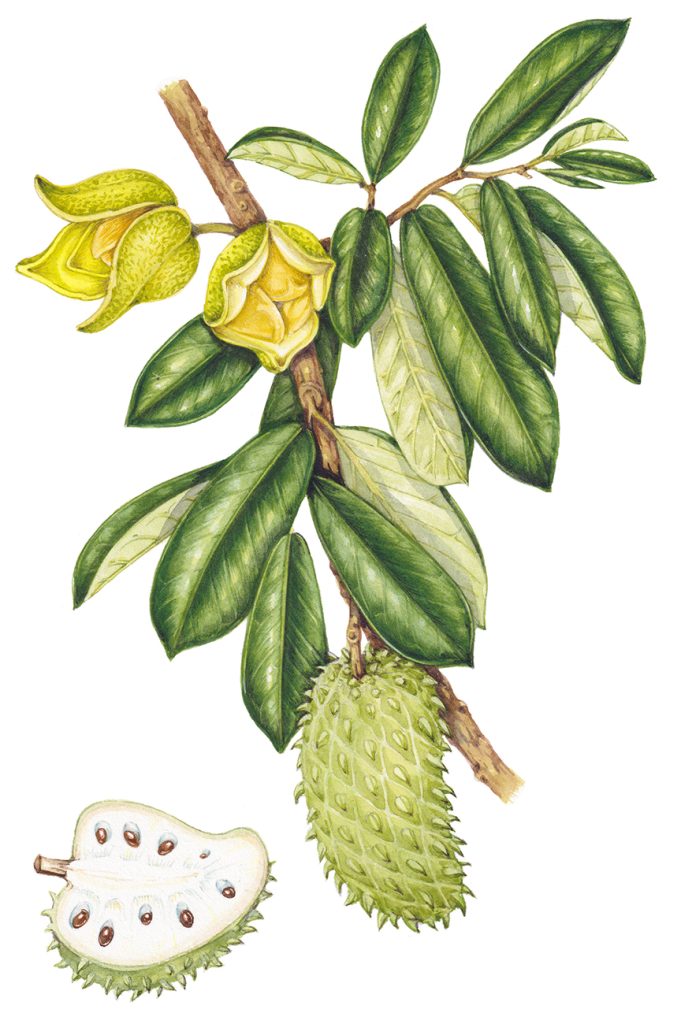 It didn’t take long to recognize some of the plants I’d illustrated. On a guided nature hike, I was shown the soursop fruit.