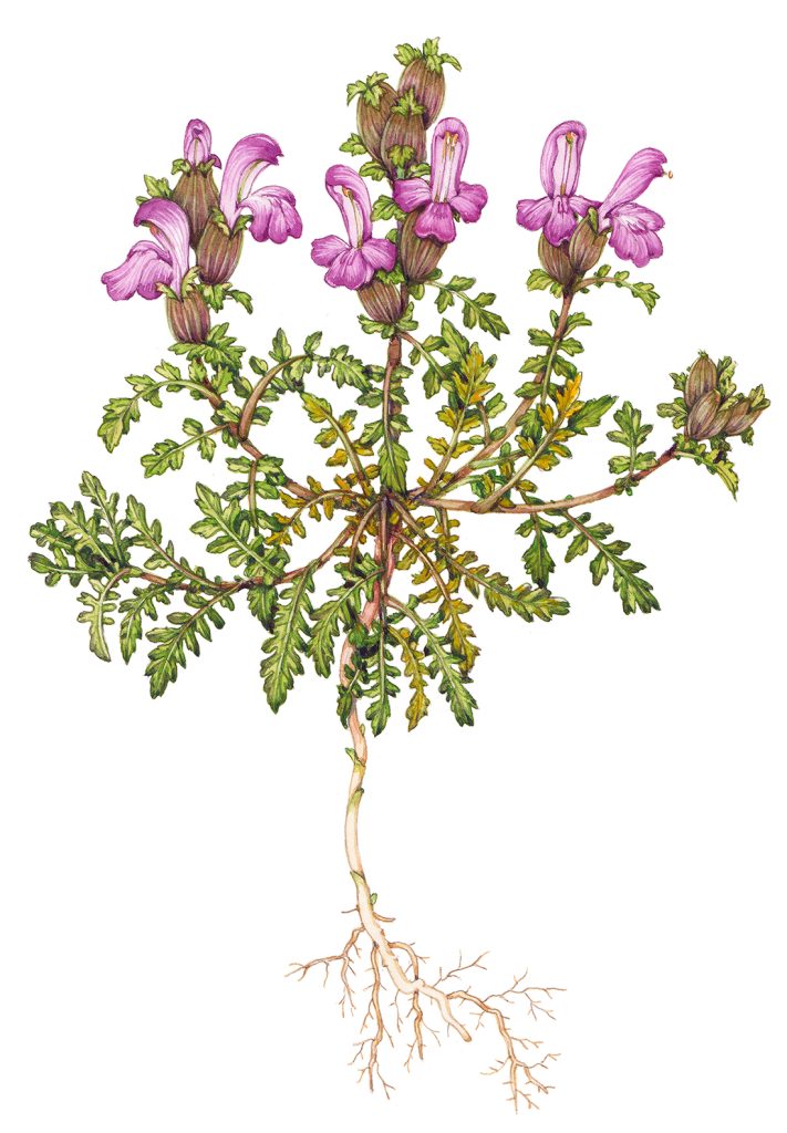 Lousewort Pedicularis sylvatica – no longer in the Scrophularaceae (nor Plantaginaceae!), but now in Orobanchaceae.
