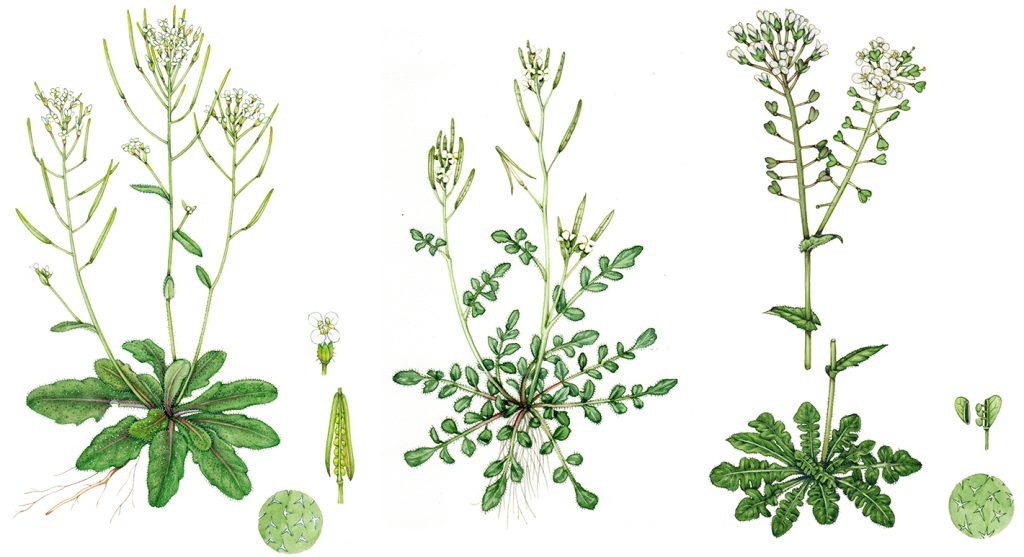 Thale cress Arabidopsis thaliana Hairy bittercress Cardamine hirsuta and Sherherds purse Capsella bursa-pastoris