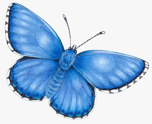 Adonis blue butterfly Polyommatus bellargus cut to white, completed for a chinaware company