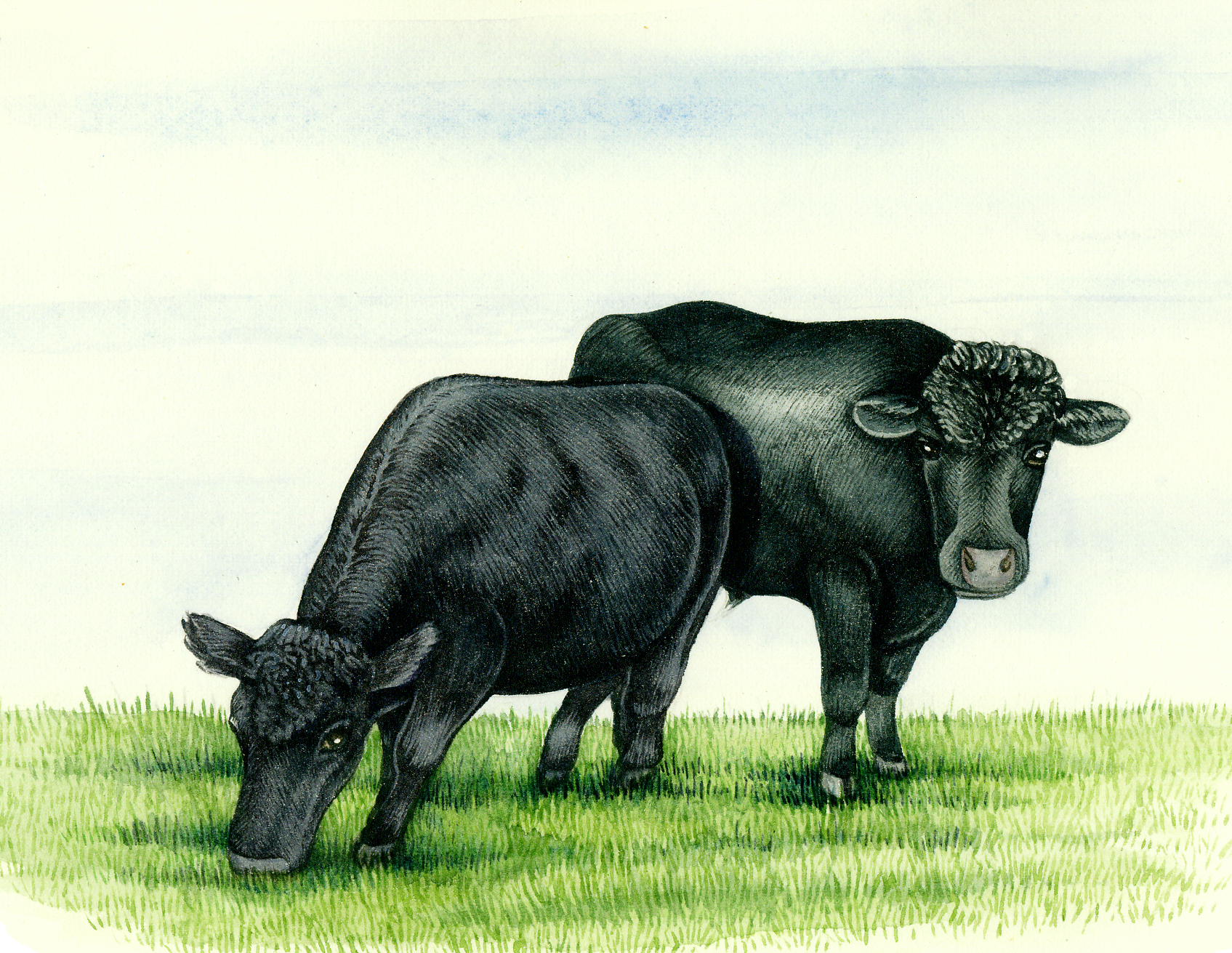 Dexter cattle pair Bos natural history illustration by Lizzie Harper