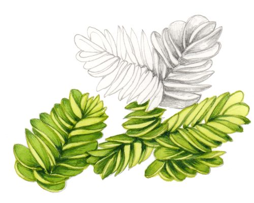 Eared watermoss Salvinia auriculata sketchbook study – SOLD –