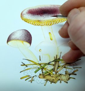 Plums and Custard Fungus tricholomopsis rutilans cap top