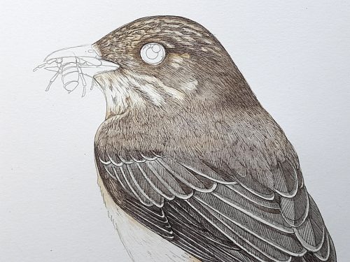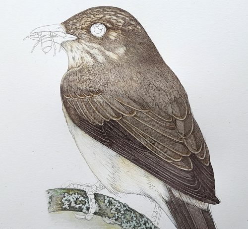 Spotted flycatcher Muscicapa striata (ants practising trophallaxis on verso)