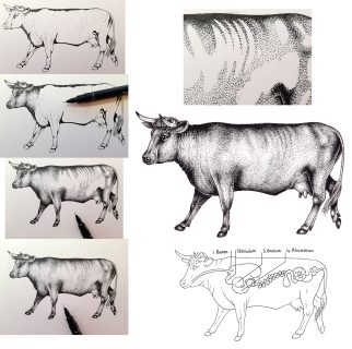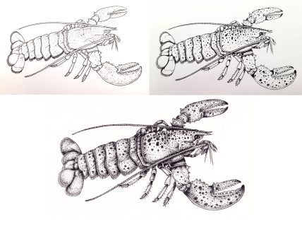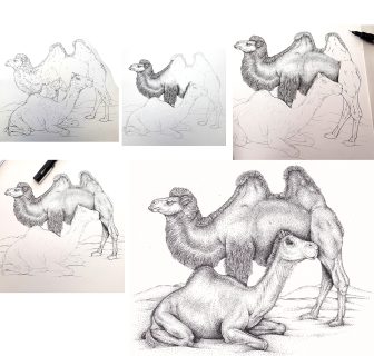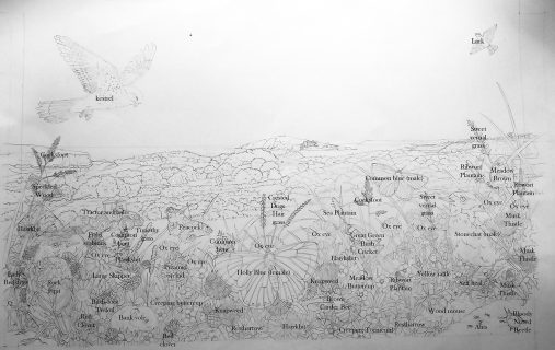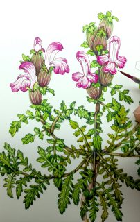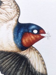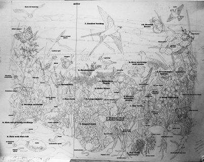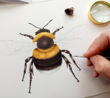 Working from a variety of sources, and being sure to emphasise species-specific traits, she draws up her illustration in pencil