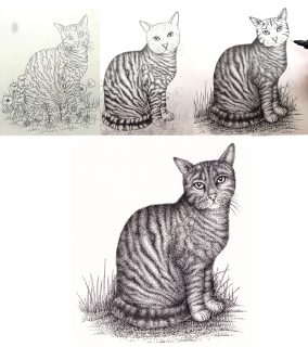 Lizzie starts by plotting in her dark areas, then blends to lighter colours.