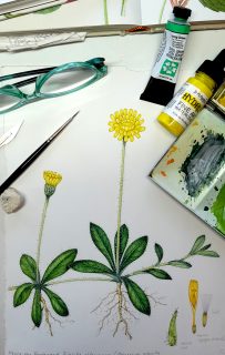 After researching the species she’s illustrating, she gathers reference (preferably specimens not images)
